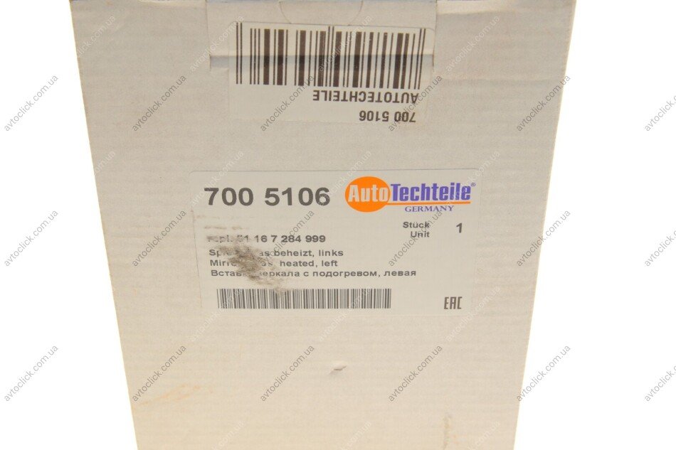 Скло дзеркала (з підігрівом) BMW 1 (F20/ F21)/ 3 (F30/ F31)/ 5 (F10/ F11) 09- (L) — AUTOTECHTEILE 700 5106