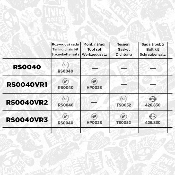 - ET ENGINETEAM RS0040 подходит к маркам/моделям авто: