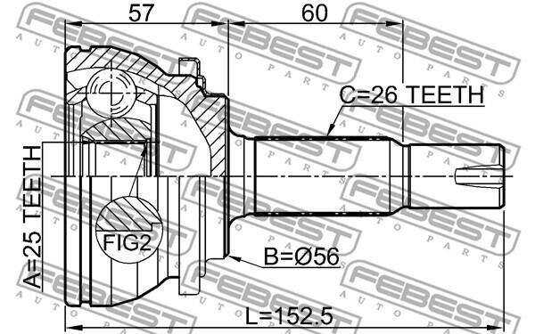 ШРКШ (ШРУС) зовнішній 25x56x26 TOYOTA PRIUS 1.8 Hybrid 08-/LEXUS CT (ZWA10_) 200h 11- — FEBEST 0110-ZVW30