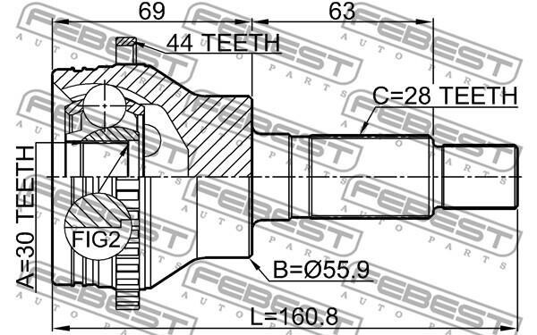Шрус зовнішній задній 30x56x28 — FEBEST 0510CX7A44R